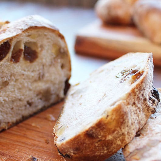 天然酵母の生地に最上級のくるみとレーズンをふんだんに使用して、長時間発酵の後じっくり焼き上げました。
